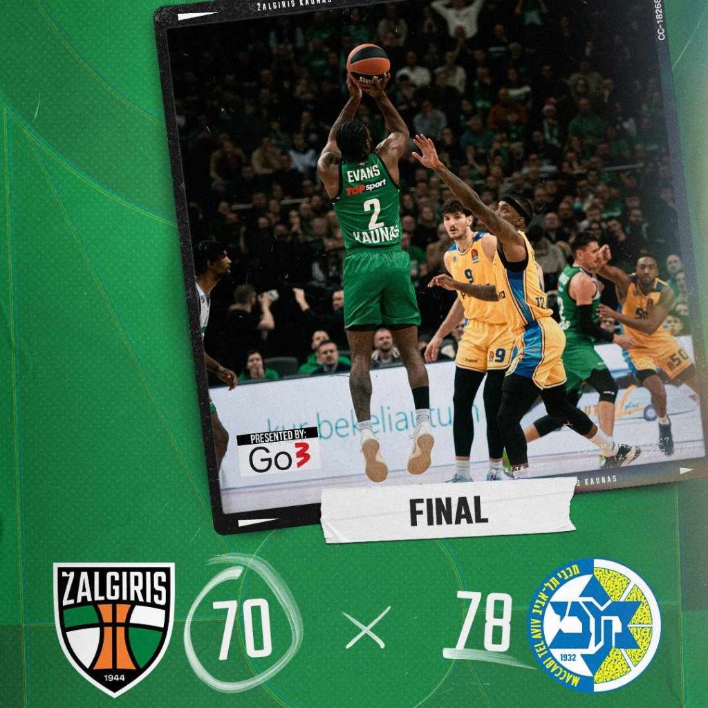 Μπορεί η Μακάμπι να αντιμετωπίζει τεράστιες δυσκολίες τη φετινή σεζόν, ωστόσο το σύνολο του Κάτας συνεχίζει να εντυπωσιάζει εντός παρκέ, παρά τα προβλήματα της. Η ομάδα του Τελ Αβίβ νίκησε με 78-70 τη Ζάλγκιρις στο Κάουνας για τη 17η αγωνιστική της διοργάνωσης και συνεχίζει να εντυπωσιάζει, να διεκδικεί θέση ακόμη και στην εξάδα της κανονικής περιόδου που προσφέρει την απευθείας συμμετοχή στα playoffs.