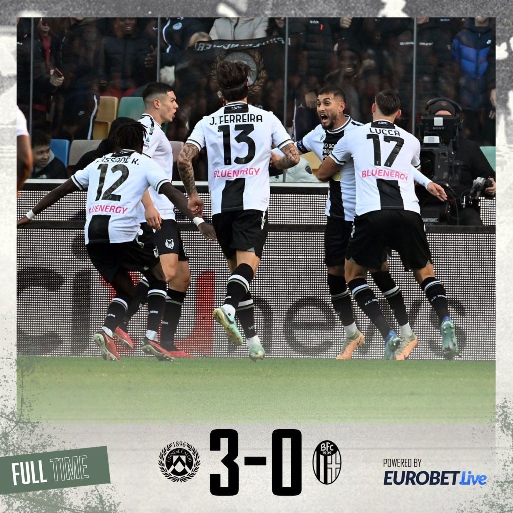 Κάζο για την Μπολόνια στο Ούντινε, όπου γνώρισε βαριά ήττα με 3-0 από την Ουντινέζε κι έμεινε εκτός τετράδας. Ανάσα για τις «ζέβρες» που επέστρεψαν στα τρίποντα μετά από σχεδόν δύο μήνες, ενώ για την Μπολόνια αυτή ήταν η πρώτη της ήττα μετά από τις 12 Νοεμβρίου.
