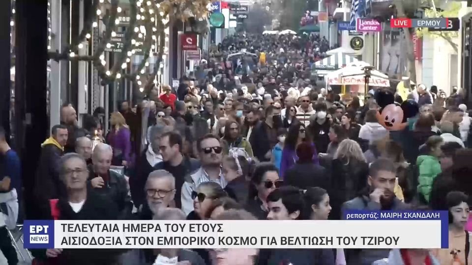 Σε εορταστικούς ρυθμούς κινείται και σήμερα, παραμονή Πρωτοχρονιάς, η αγορά, με τους πολίτες να σπεύδουν για τα ψώνια και τα δώρα της τελευταίας στιγμής. Στο μεταξύ, αισιοδοξία επικρατεί στον εμπορικό κόσμο ότι ο τζίρος φέτος θα κινηθεί σε καλύτερα επίπεδα σε σύγκριση με πέρυσι.