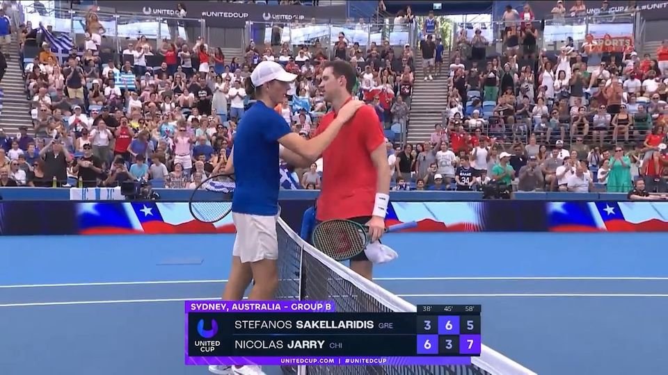 Σε αγώνα για το United Cup, που διεξάγεται στο Σίδνεϊ, ο Στέφανος Σακελλαρίδης πραγματοποίησε σπουδαία εμφάνιση, αλλά, στο τέλος λύγισε, με τον Νίκολα Τζάρι να παίρνει το παιχνίδι, 2-1 σετ, και τη Χιλή να ισοφαρίζει την Ελλάδα, σε 1-1.