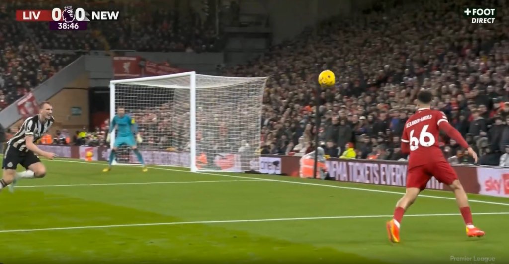 Λίγο πριν το ημίχρονο, στο "Άνφιλντ", Λίβερπουλ και Νιούκαστλ ήταν στο 0-0, όταν ο Τρεντ Αλεξάντερ-Άρνολντ επιχείρησε να βάλει το γκολ της χρονιάς.