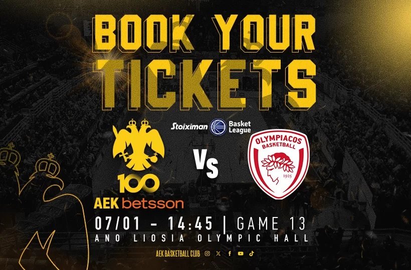 Την Κυριακή (7/1) η ΑΕΚ υποδέχεται στα Λιόσια τον Ολυμπιακό και η ΚΑΕ απηύθυνε κάλεσμα στον κόσμο της ομάδας να γεμίσει το Κλειστό και να δημιουργήσει καυτή ατμόσφαιρα.