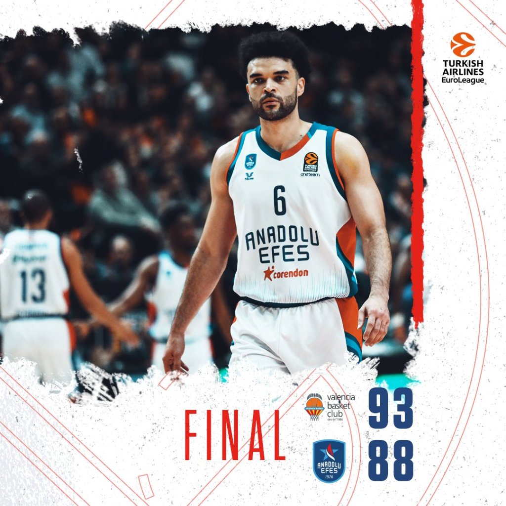 Επιστροφή στις νίκες για την ομάδα του Άλεξ Μουμπρού, με τη Βαλένθια να φτάνει στην πολύ σημαντική επικράτηση κόντρα στην Εφές, πηγαίνοντας στο 10-8, μπαίνοντας για τα καλά στο κόλπο των θέσεων που οδηγούν στα πλέι οφ. Βυθίστηκε ακόμα περισσότερο η ομάδα του Ερντέμ Τσαν (7-11).