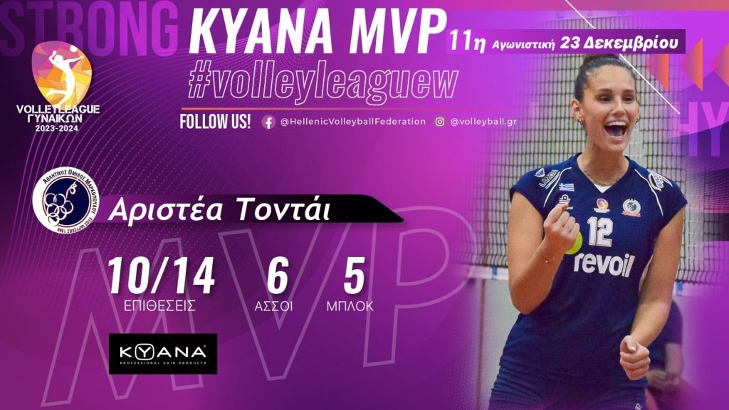 Με αφορμή την ανάδειξή της ως KYANA MVP της 11ης αγωνιστικής, η Αριστέα Τοντάι δήλωσε: