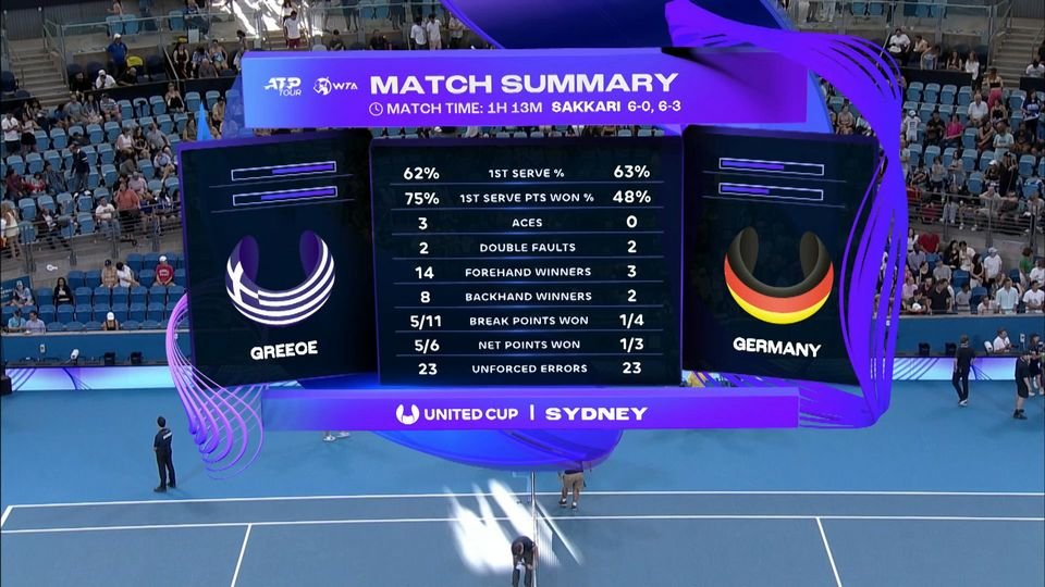 Στον πρώτο αγώνα του προημιτελικού Ελλάδα-Γερμανία, η Μαρία Σάκκαρη συνέτριψε 2-0 σετ την Αντζελίκ Κέρμπερ, δίνοντας το προβάδισμα στην ελληνική ομάδα.