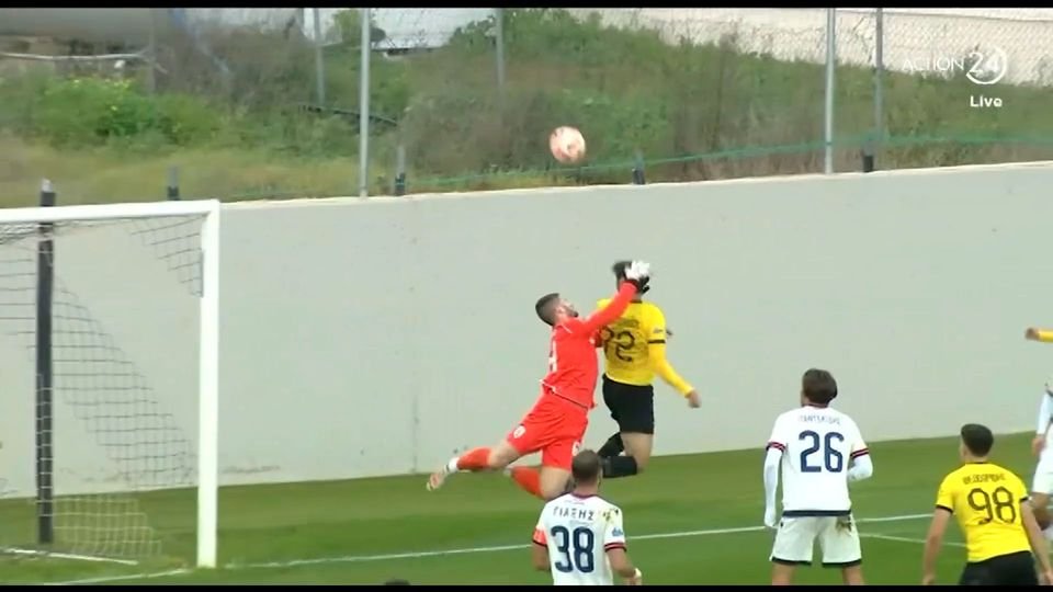 Στο 29’ ο Χριστόπουλος έπιασε την ψηλοκρεμαστή κεφαλιά και ο Ταχλιμανίδης έκανε έξοδο και τον ανέτρεψε. Ο διαιτητής δεν είδε όμως παράβαση.