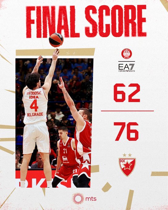 Μεγάλο αποτέλεσμα για τον Ερυθρό Αστέρα στο Μιλάνο, με την ομάδα του Γιάννη Σφαιρόπουλου να έχει τον έλεγχο καθ' όλη τη διάρκεια του παιχνιδιού απέναντι στην Αρμάνι και να πανηγυρίζει τη νίκη με ηγέτη τον Ρόκας Γκιεντράιτις. Οι ερυθρόλευκοι του Βελιγραδίου πήραν μία νίκη χαρακτήρα, με δεδομένο ότι είδαν την τύχη να τους γυρνάει την πλάτη στο πρώτο δεκάλεπτο, όταν είδαν τρεις παίκτες να φεύγουν από το παρκέ με πρόβλημα τραυματισμού σε διάστημα λίγων δευτερολέπτων.
