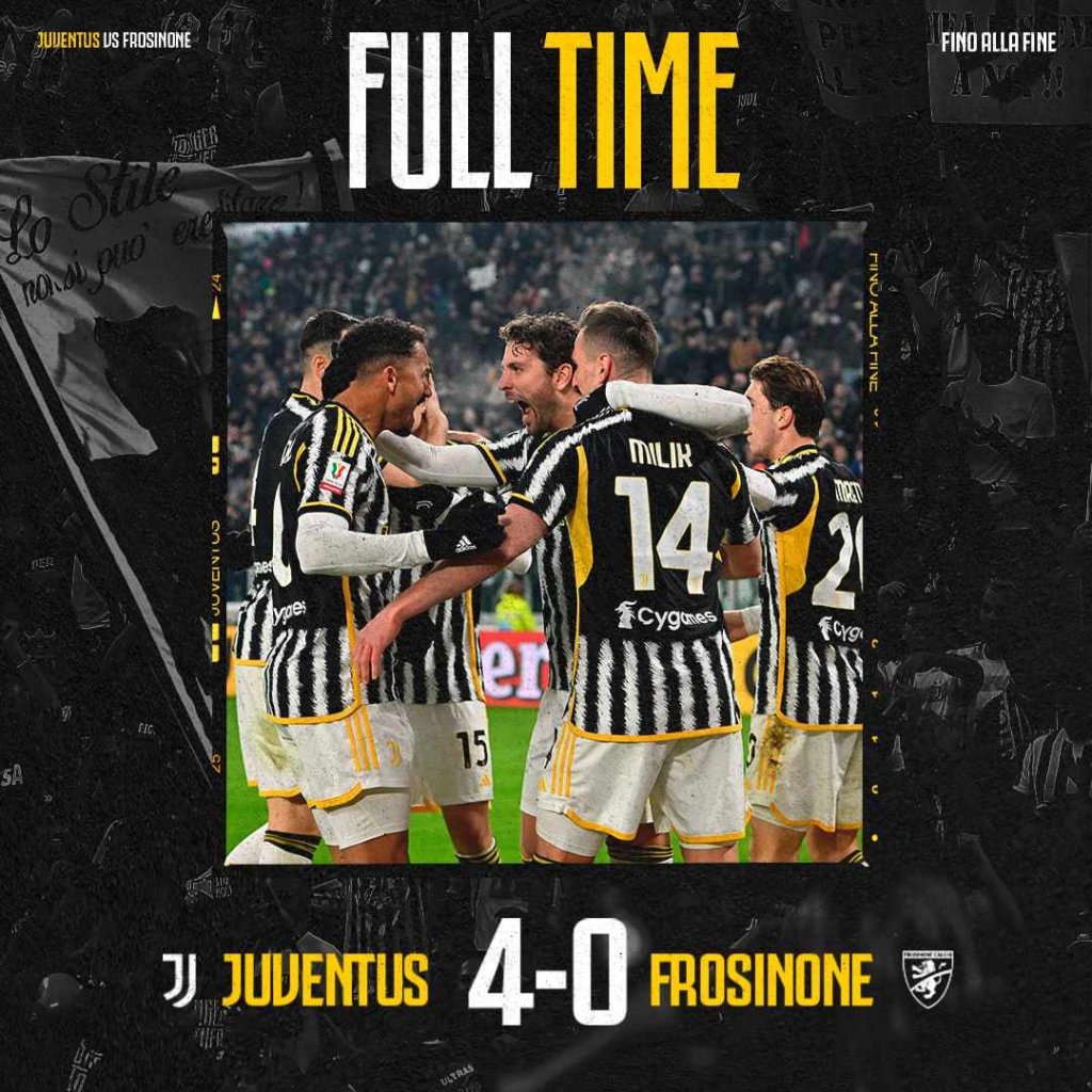 Η Γιουβέντους νίκησε με 4-0 την Φροζινόνε στο «Αlianz Stadium» και προκρίθηκε στην επόμενη φάση του κυπέλλου Ιταλίας οπού θα τεθεί αντιμέτωπη με την Λάτσιο του πρώην προπονητή της Μαουρίτσιο Σάρι και του Χρήστου Μανδά.