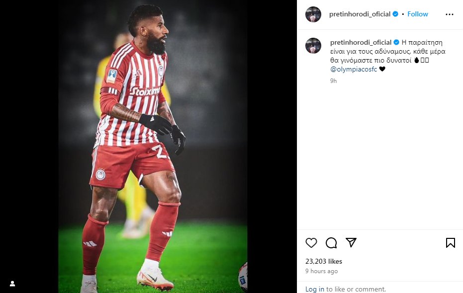 Την επομένη του Παναθηναϊκός-Ολυμπιακός, για τη φάση των "16" του Κυπέλλου Ελλάδας, ο Ροντινέι, σε ανάρτησή του, έγραψε "Η παραίτηση είναι για τους αδύναμους", με τον 32χρονο Βραζιλιάνο μπακ του Ολυμπιακού να διαβεβαιώνει πως, κάθε μέρα, η ομάδα θα γίνεται πιο δυνατή.