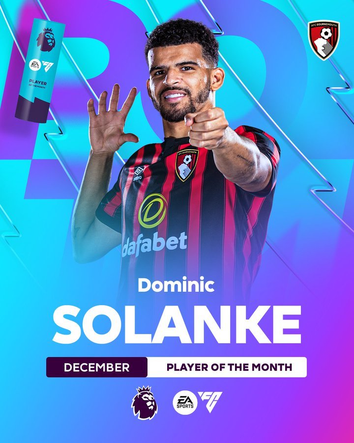 Ο επιθετικός της Μπόρνμουθ Ντομικίν Σολάνκε βραβεύτηκε ως ο κορυφαίος ποδοσφαιριστής του Δεκεμβρίου στην Premier League.
