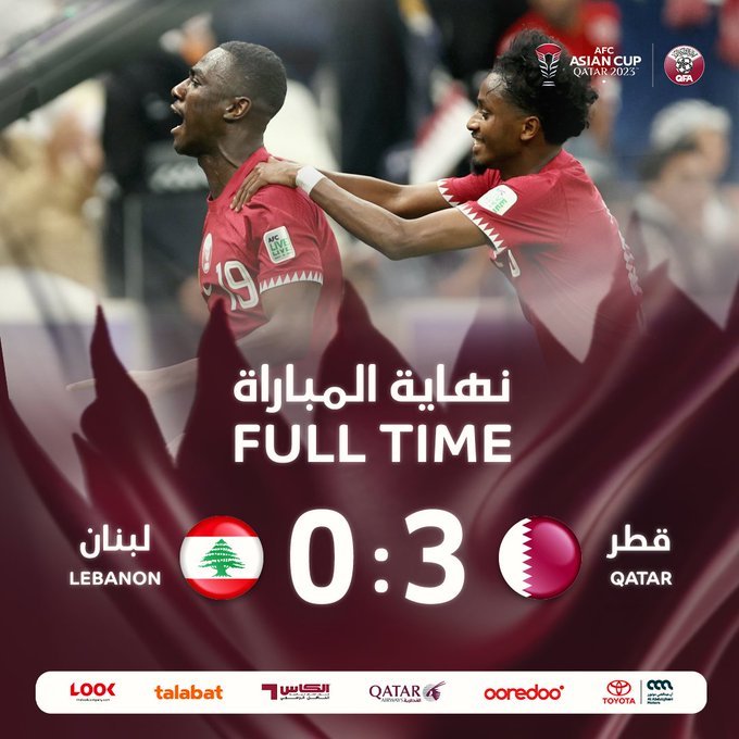 Με τον καλύτερο τρόπο ξεκίνησε τις υποχρεώσεις του στο Asian Cup το Κατάρ, καθώς κέρδισε εύκολα με 3-0 τον Λίβανο. Μεγάλος πρωταγωνιστής για τους νικητές ο Αφίφ, ο οποίος πέτυχε δύο τέρματα.