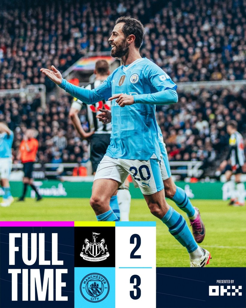 Απόδραση με ανατροπή στην ανατροπή για τη Σίτι από το «Σεντ Τζέιμς Παρκ». Οι «πολίτες» πέρασαν με 3-2 από την έδρα της Νιούκαστλ και βρέθηκαν στο -2 από τη Λίβερπουλ. Πρωταγωνιστής Ντε Μπρόινε που μπήκε στο 69ο λεπτό και είχε γκολ και ασίστ.