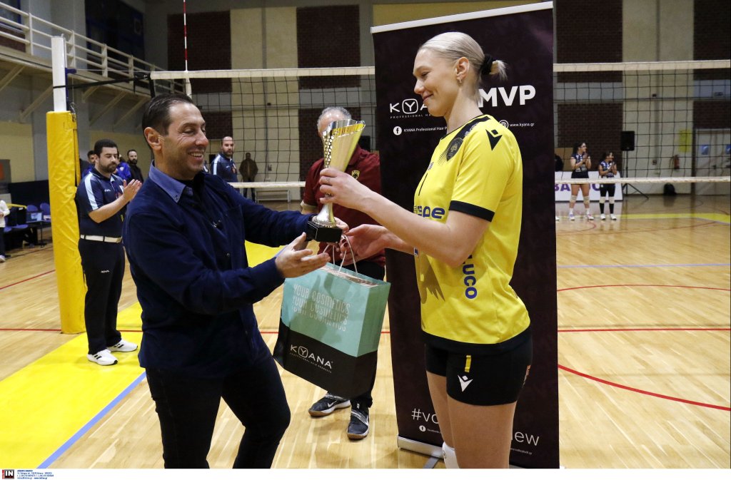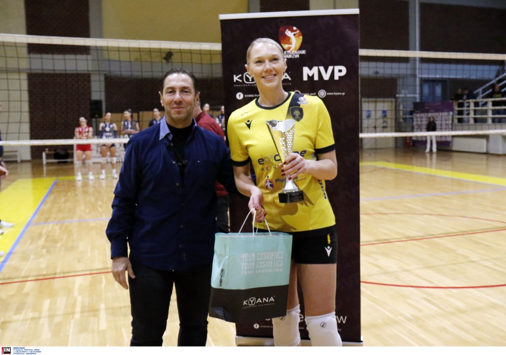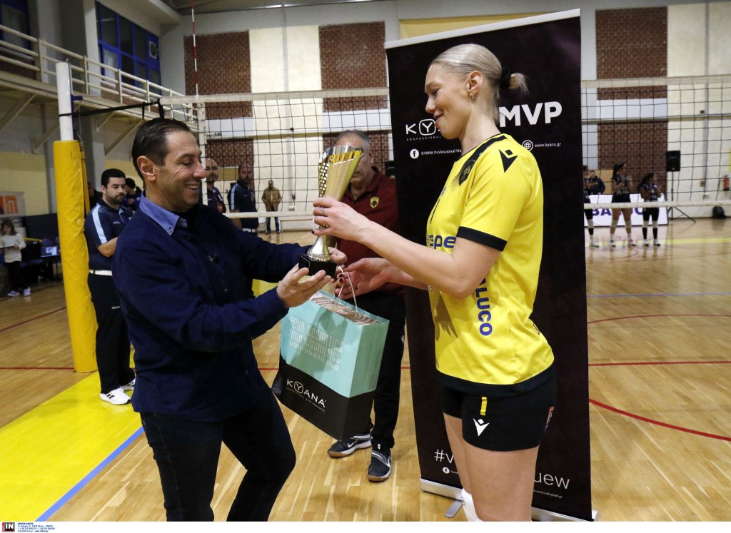 Έτσι, πριν την έναρξη του σημερινού αγώνα της γυναικείας ομάδας βόλεϊ της ΑΕΚ με τον Απολλώνιο ο γενικός γραμματέας της ΑΕΚ Λευτέρης Αρχόντης βράβευσε την Κατερίνα Γιώτα για την ανάδειξή της ως KYANA MVP της 10ης αγωνιστικής.