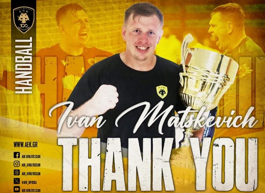 Η ΑΕΚ ανακοινώνει την κοινή συναινέσει λύση της συνεργασίας της με τον Ιβάν Μάτσκεβιτς. Ο Ιβάν αποτέλεσε ένα πολύ σημαντικό κομμάτι του παζλ για την κατάκτηση του περσινού πρωταθλήματος και του ευχόμαστε καλή συνέχεια στην καριέρα του.