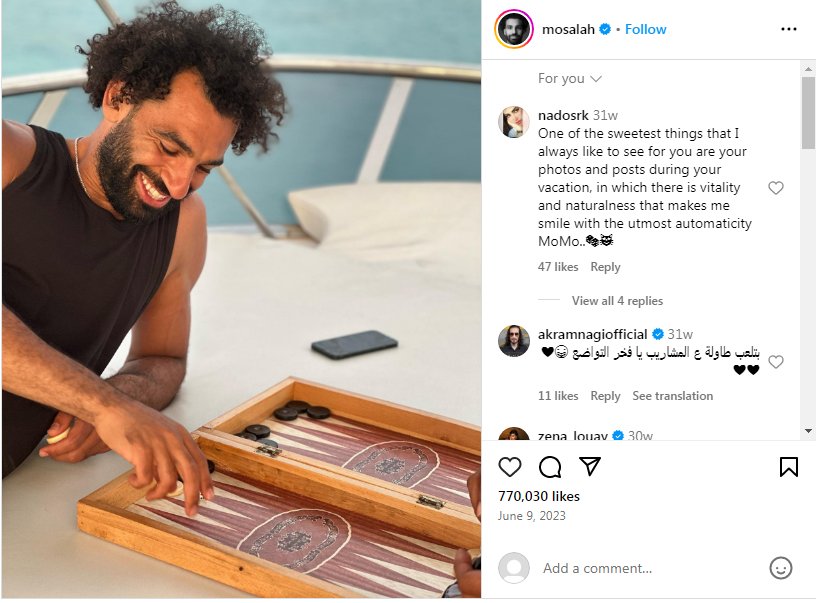 Ο ίδιος ο Αιγύπτιος άσος της Λίβερπουλ αποκάλυψε το χόμπι του, λέγοντας πως "παίζω σκάκι, είμαι εθισμένος στο σκάκι. Κάθε μέρα, κυριολεκτικά κάθε μέρα".