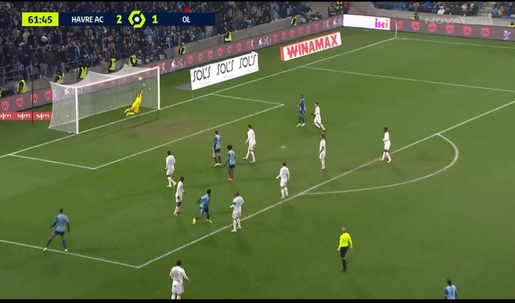 Στο 17ο λεπτό, η Χάβρη βγήκε στην επίθεση, ο Κέχτα έπιασε το σουτ και ο Άντονι Λόπες απέκρουσε, με τους γηπεδούχους να κερδίζουν κόρνερ. Από αυτή τη στημένη φάση, η Χάβρη άνοιξε το σκορ, μιας και ο Γκοτιέ Γιορίς, με κεφαλιά, έστειλε την μπάλα στα δίχτυα για το 1-0. Αυτή, ήταν η πρώτη φορά, μετά από παραπάνω από 400 αγωνιστικά λεπτά, που παραβιάστηκε η εστία της Λιόν. Στο μισάωρο, τα πράγματα έγιναν ακόμα πιο δύσκολα, για τους φιλοξενούμενους, καθώς έμειναν με δέκα παίκτες, όταν, με χρήση VAR, ο διαιτητής έδειξε, απευθείας, κόκκινη στον Τζέικ Ο'Μπρέιεν.