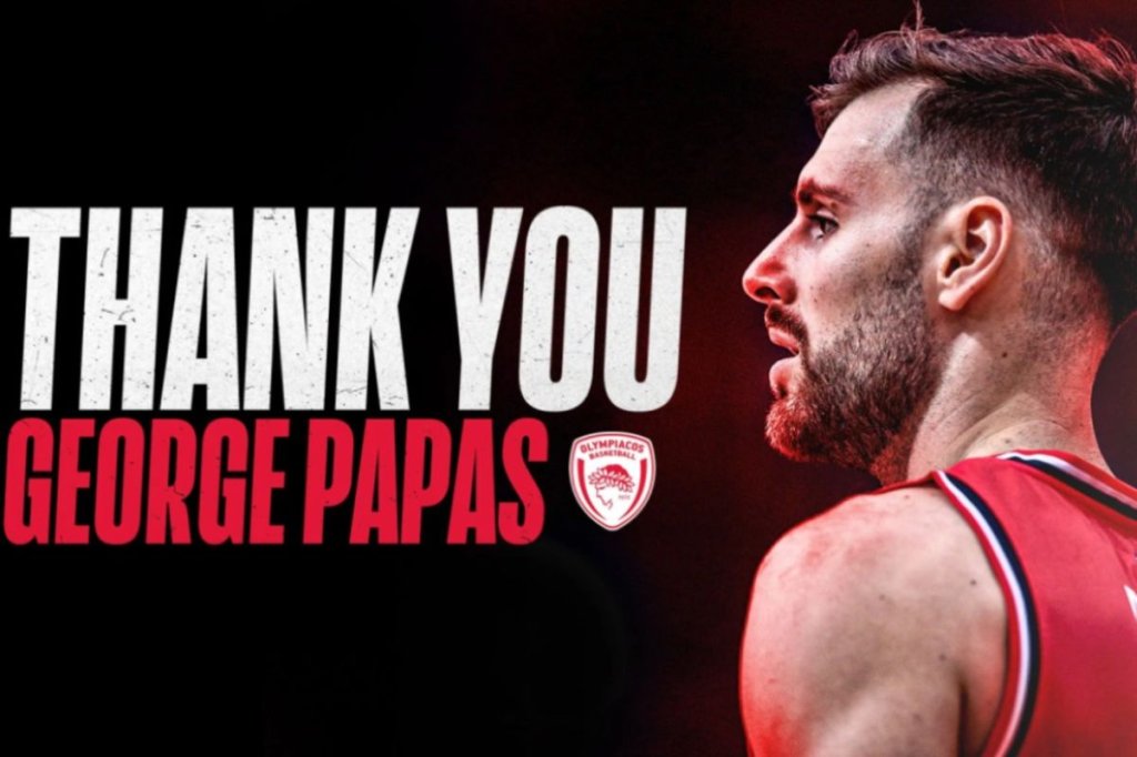 "H KAE Ολυμπιακός ανακοινώνει τη λύση της συνεργασίας της με τον Έλληνα γκαρντ, Τζορτζ Πάπας και του εύχεται καλή συνέχεια στην καριέρα του".