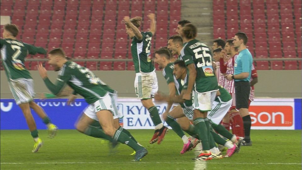 Στην διαδικασία των πέναλτι, ο Παναθηναϊκός πήρε την πρόκριση, μέσα στο "Γ. Καραϊσκάκης", επί του Ολυμπιακού, με σκορ 7-6, και συνεχίζει στην προημιτελική φάση του Κυπέλλου Ελλάδας. Οι δύο ομάδες σε 120 λεπτά δεν πέτυχαν γκολ, όμως στα πέναλτι στη ρωσική ρουλέτα η μπίλια έκατσε στους πράσινους μετά το άστοχο πέναλτι του Καμαρά.
