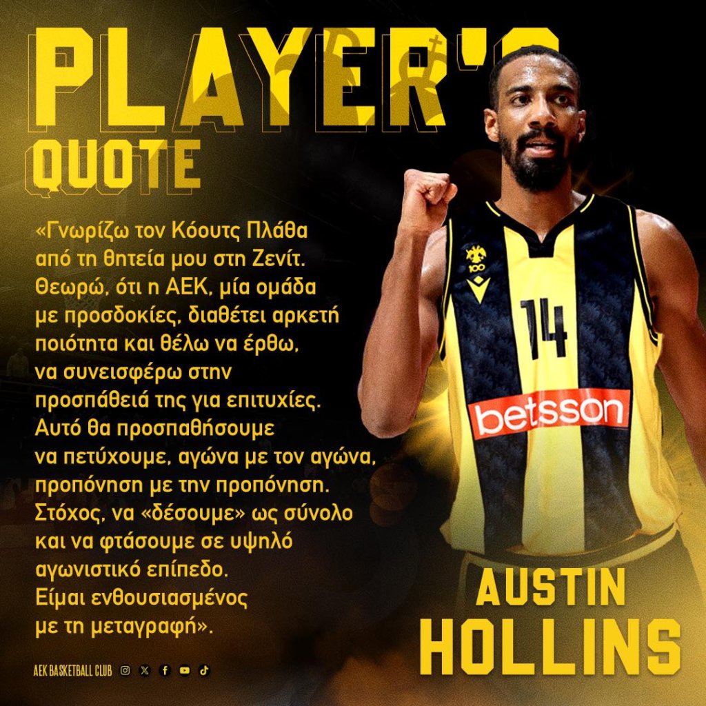 Tις πρώτες του δηλώσεις ως παίκτης της ΑΕΚ έκανε ο Οστιν Χόλινς. Μιλώντας στο aekbc.gr ο 32χρονος Αμερικανός είπε αναλυτικά: