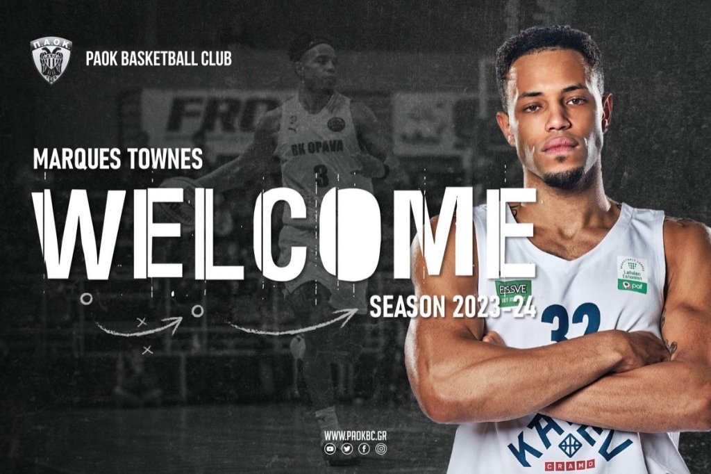 "Η ΚΑΕ ΠΑΟΚ mateco ανακοινώνει την συμφωνία με τον Marques Townes μέχρι το τέλος της αγωνιστικής περιόδου 2023-24.O Townes αναμένεται σήμερα στη Θεσσαλονίκη και θα ενισχύσει την προσπάθεια της ομάδας μας σε Πρωτάθλημα και Κύπελλο Ελλάδας.