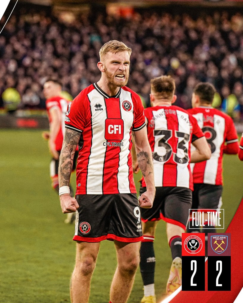 Γκέλα ολκής για τη Γουέστ Χαμ που κόλλησε στο 2-2 μέσα στην έδρα της ουραγού Σέφιλντ κι έχασε έδαφος στη μάχη της Ευρώπης.