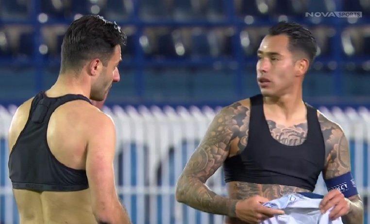 Σέρχιο Αραούχο και Γιώργος Τζαβέλλας αντάλλαξαν φανέλες μετά το τέλος του ματς της ΑΕΚ με τον Ατρόμητο στο Περιστέρι. Ο Τσίνο με τον πρώην συμπαίκτη του στην Ένωση συνομίλησαν λίγο με το κλίμα να είναι εξαιρετικό.
