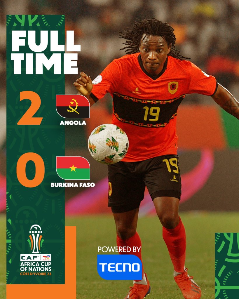 Η Ανγκόλα λύγισε την Μπουρκίνα Φάσο με 1-0 και πήρε την πρωτιά αι την πρόκριση. Γκολ από τον Ζίνι που μπήκε στοματς στο 77ο λεπτό και βρήκε δίχτυα στις καθυστερήσεις.