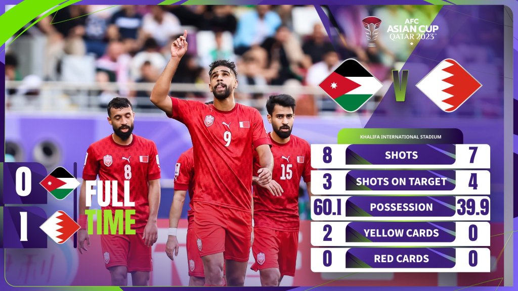 Πρόρκιση για το Μπαχρέιν που κέρδισε με 1-0 την Ιορδανία η οποία πέρασε ως μία από της καλύτερες 3ες. Το «χρυσό» γκολ ο Γιουσούφ Χελάλ στο 34ο λεπτό της αναμέτρησης.