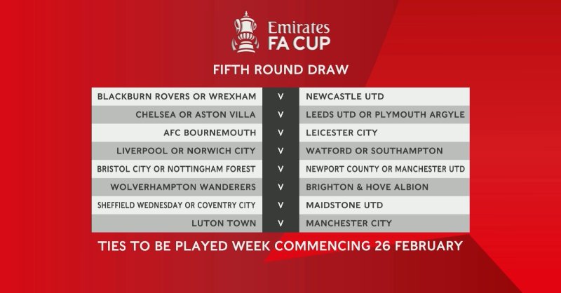 The draw has been made for the #EmiratesFACup fifth round proper ????