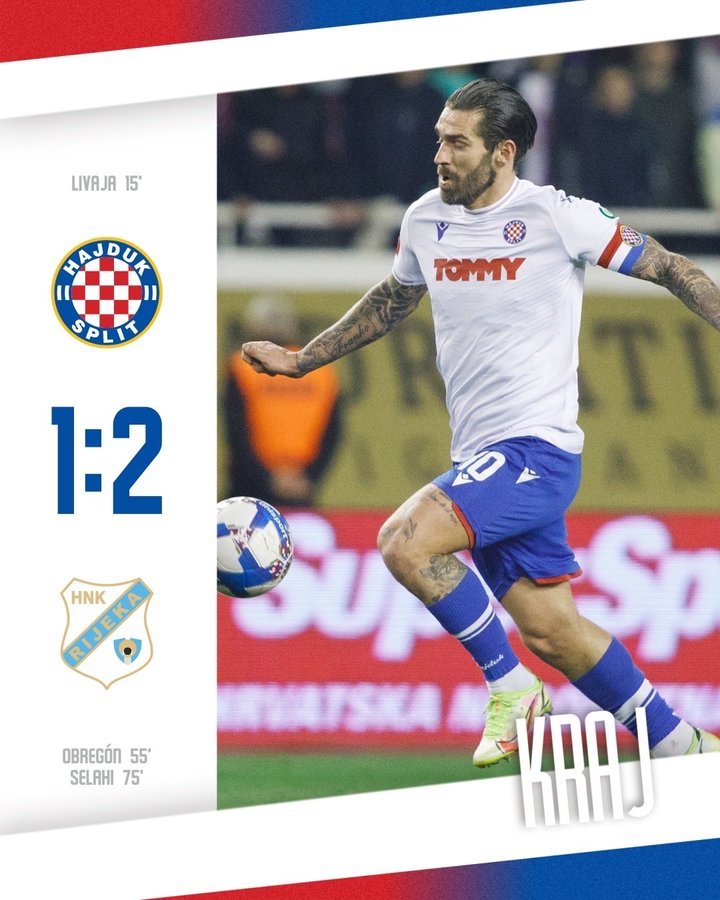 Στο 15ο λεπτό ο Μάρκο Λιβάγια με καρφωτή κεφαλιά άνοιξε το σκορ για την Χάιντουκ, ωστόσο στο 55’ ο Ομπρεγκόν έφερε το ματς και πάλι στα ίσα. Στο 62’ η Ριέκα είχε ακυρωθέν γκολ με τον Γκόντα και στο 75’ ο Σελαχί διαμόρφωσε το τελικό 1-2.