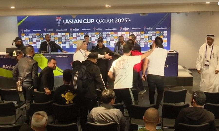 Quarrel situation in the press conference room post-match between Iraq and Jordan in the AFC Asian Cup 2023 round of 16 at Khalifa International Stadium.