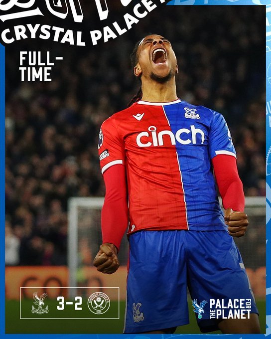 Νίκη-ανάσα για την Κρίσταλ Πάλας! Το σύνολο του Ρόι Χόντσον επιβλήθηκε 3-2 της Σέφιλντ Γιουνάιτεντ με ανατροπή, επέστρεψε στις νίκες και βρέθηκε στο +6 από την επικίνδυνη ζώνη. Σταθερά τελευταίες οι «Λεπίδες», οι οποίες είναι το πρώτο φαβορί για υποβιβασμό. Αγωνία για Ολίσε και Έζε στους γηπεδούχους, με τους δύο παίκτες να αποχωρούν από το ματς λόγω τραυματισμών.