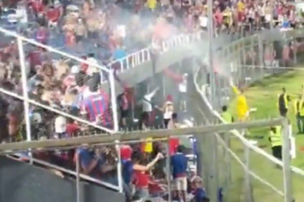 Για την ακρίβεια, οι οπαδοί της Σέρο Πορτένιο άρχισαν να πλακώνονται μεταξύ τους, με τις σκηνές να είναι τρομακτικές, αφού άνθρωποι κρέμονταν από τα κάγκελα και τα καθίσματα έπεφταν... βροχή. Την ίδια στιγμή, ο τερματοφύλακας της Σέρο Πορτένιο, θέλοντας να τους επαναφέρει στην τάξη, πήρε μια μάνικα και άρχισε να τους πετάει νερό!