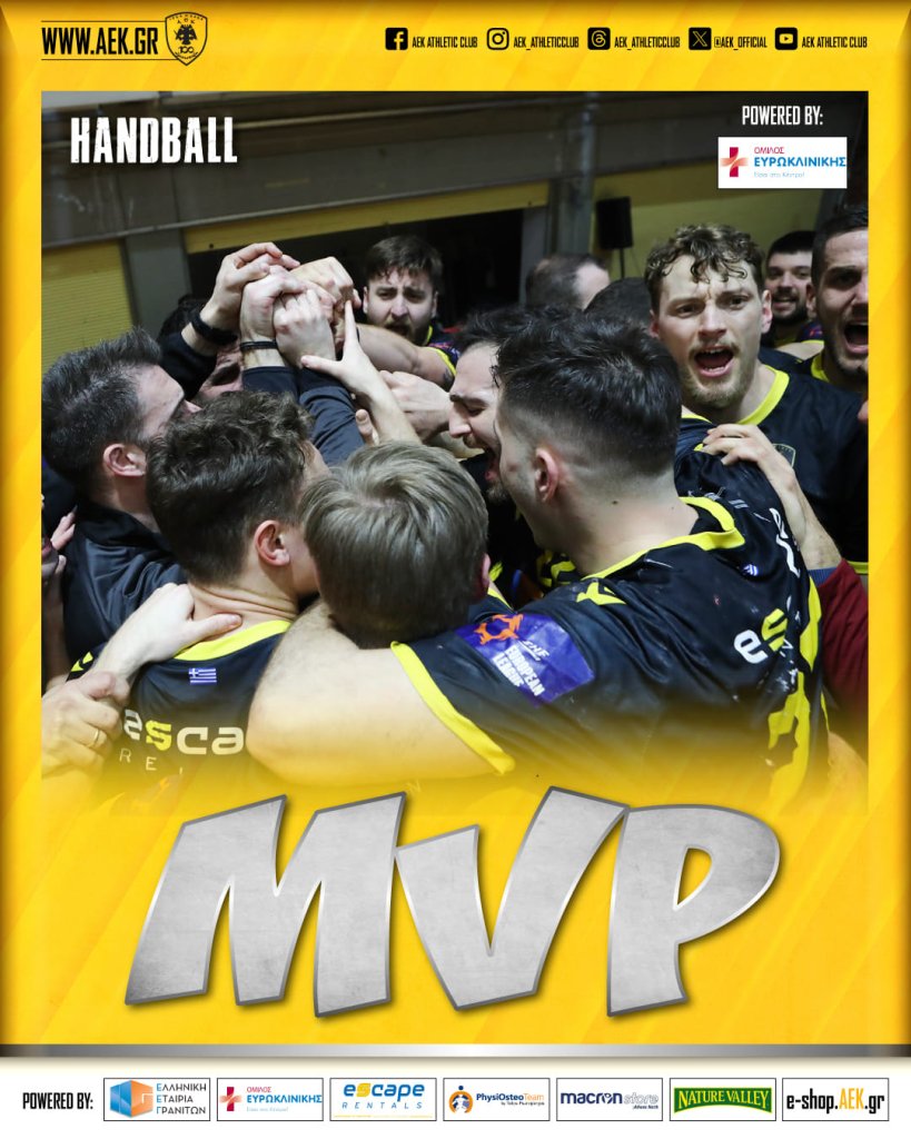 Η ομάδα χάντμπολ της ΑΕΚ πήρε μια νίκη-θρίλερ στην παράταση επί του Ολυμπιακού (23-23, 25-28 παρ.) και έτσι «πέταξε» στα προημιτελικά του Κυπέλλου Ελλάδας. Η Ένωση δεν το έβαλε κάτω και με αρκετά καλή εμφάνιση παικτών και τερματοφύλακα κατάφερε να φτάσει στο επιθυμητό αποτέλεσμα, γι΄αυτό το λόγο μετά το τέλος του ντέμρπι όλη η ομάδα χάντμπολ της ΑΕΚ ήταν αυτή που κέρδισε τον τίτλο «Όμιλος Ευρωκλινικής» MVP.