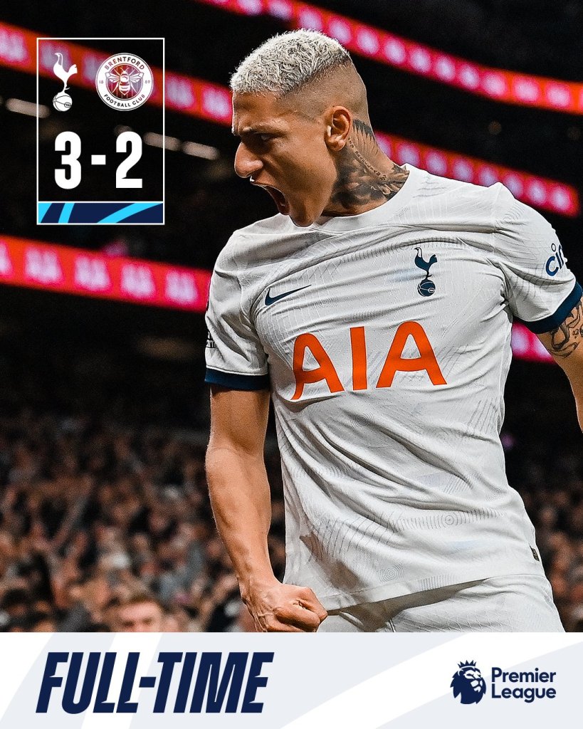 Στην τετράδα σκαρφάλωσε η Τότεναμ η οποία κέρδισε με 3-2 την Μπρέντφορντ και μάλιστα με ανατροπή.