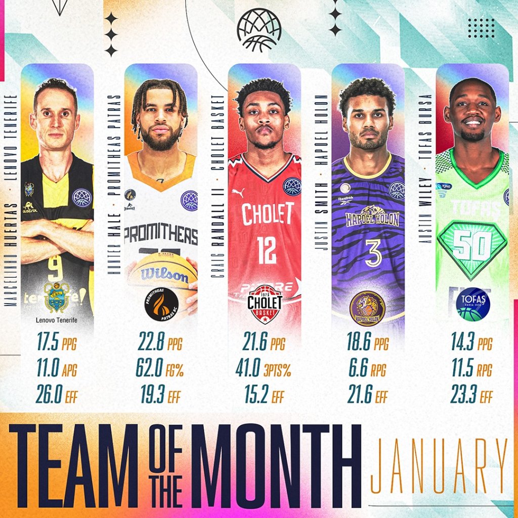 Ο Huertas έχει στο πλευρό του δύο αριστερόχειρες σουτέρ στην Καλύτερη 5άδα του μήνα. Ο Hunter Hale οδήγησε τον Προμηθέα Πάτρας στην Φάση των 16 και ξεκίνησε ιδάνικα το 2024.