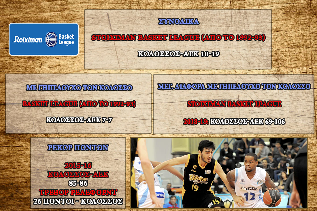 Κολοσσός H Hotels και ΑΕΚ Betsson θα συμπληρώσουν αύριο 30 αγώνες στην κοινή ιστορία τους στη Stoiximan Basket League, με την «Ένωση» να έχει τον πρώτο λόγο χάρη στην κυριαρχία της στα ματς της Αθήνας. Στη Ρόδο ωστόσο, η κατάσταση είναι απόλυτα ισορροπημένη. Καμία από τις δύο ομάδες δεν έκανε σερί μεγαλύτερο των τριών νικών στα ματς με γηπεδούχο τον Κολοσσό H Hotels που επικράτησε στα παιχνίδια των σεζόν 2008-09, 2009-10 και 2010-11.