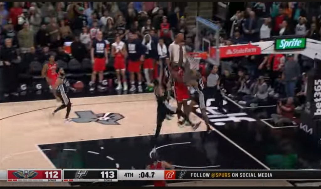 Έχοντας απέναντί του τον θηριώδη Βίκτορ Γουεμπανιαμά και άλλους δυο αμυντικούς των Σπερς, ο Ζάιον Γουίλιαμσον ευστόχησε σε λέι απ, χάρη στο οποίο οι Νιου Ορλινς Πέλικανς έφυγαν νικητές από το Τέξας.