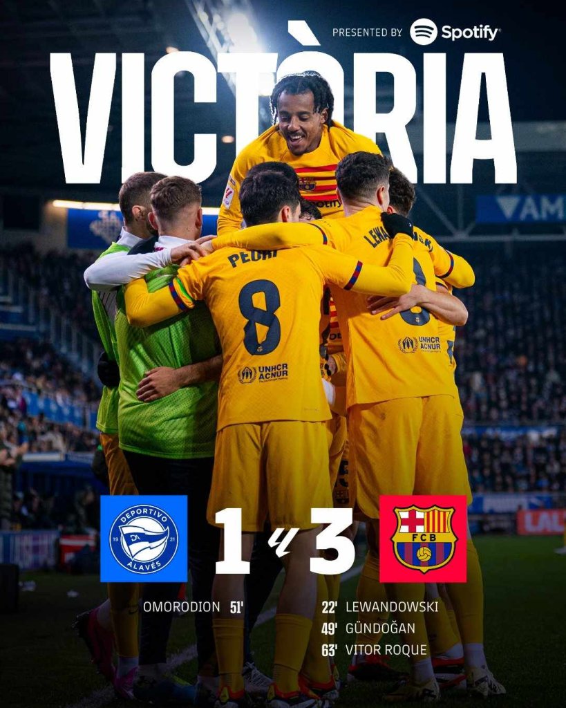 Η Μπαρτσελόνα πήγε στην έδρα της Αλαβές και έχοντας σε εξαιρετική μέρα τους Πέδρι και Γκιντογκάν κέρδισε με 3-1 και ανέβηκε προσωρινά στην 3η θέση του πρωταθλήματος και στο -5 από την 2η θέση. Με δέκα παίκτες ολοκλήρωσαν την αναμέτρηση οι «μπλαουγκράνα» μετά από μία αποβολή που δεν κατάλαβε κανείς στον Ρόγκ. Σταθερά μαξιλαράκι 10 βαθμών διατηρεί η Αλαβές από την επικίνδυνη ζώνη.