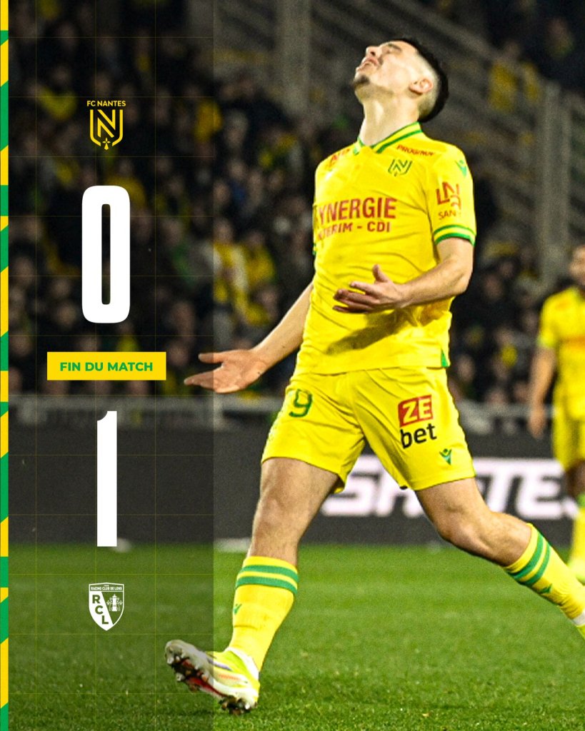 Η Λανς πέρασε με 1-0 από την έδρα της Ναντ και μπήκε ξανά σε τροχιά Ευρώπης ενώ τα «καναρίνια» βρίσκονται μόλις τρεις βαθμούς από τη ζώνη των μπαράζ και με ένα ματς παραπάνω από τη Λιόν.