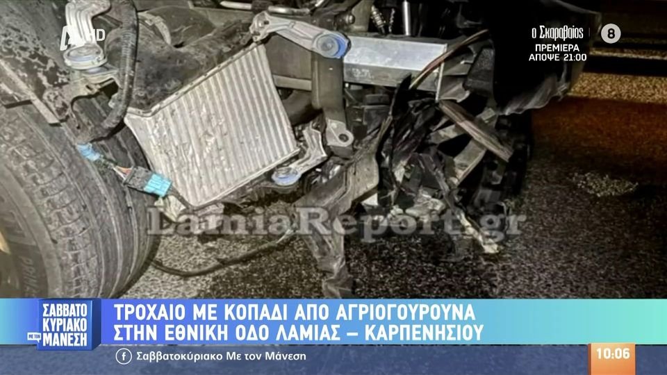 Τροχαίο έγινε χθες βράδυ με κοπάδι από αγριογούρουνα στην Εθνική Οδό Λαμίας - Καρπενησίου.