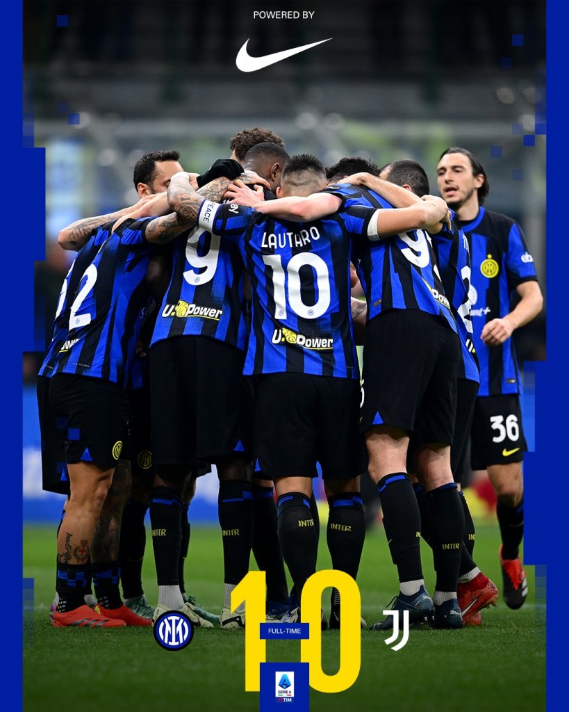 Δήλωση τίτλου από την Ίντερ στο Derby d'Italia. Οι «νερατζούρι» κέρδισαν τη Γιουβέντους με 1-0, της ξέφυγαν με τέσσερις πόντους κι έχουν κι ένα ματς λιγότερο.