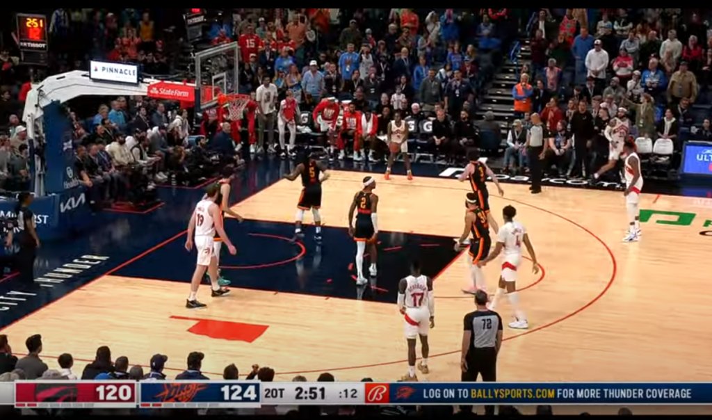 Μετά από δυο παρατάσεις, η Οκλαχόμα Σίτι Θάντερ λύγισε την αντίσταση των Τορόντο Ράπτορς, επικρατώντας 135-127 και παραμένει στην κορυφή της Δύσης. Στο φινάλε του πρώτου ημιχρόνου, οι Ράπτορς είχαν προβάδισμα 16 πόντων, 47-63, με τη Θάντερ να έχει7/25 τρίποντα. Στο τρίτο 12λεπτο, η ομάδα του Τορόντο βρέθηκε και στο +23, 53-76, αλλά, σε εκείνο το σημείο, οι γηπεδούχοι ξεκίνησαν να... ροκανίζουν τη διαφορά. Έτσι, με λέι απ του Άαρον Γουίγκινς, η Θάντερ έστειλε το ματς στην παράταση, 110-110, εκεί όπου ο Σάι Γκίλτζιους-Αλεξάντερ κράτησε ζωντανή τη Θάντερ με τρίποντο, 118-118, και τάπα, για να οδηγήσει το παιχνίδι σε δεύτερη παράταση. Στο δεύτερο, έξτρα πεντάλεπτο, ο Ντορτ πρωταγωνίστησε, για την ομάδα της Οκλαχόμα, αφού, με δικά του καλάθια, η Θάντερ καθάρισε το παιχνίδι και ανέβηκε στο 35-15.