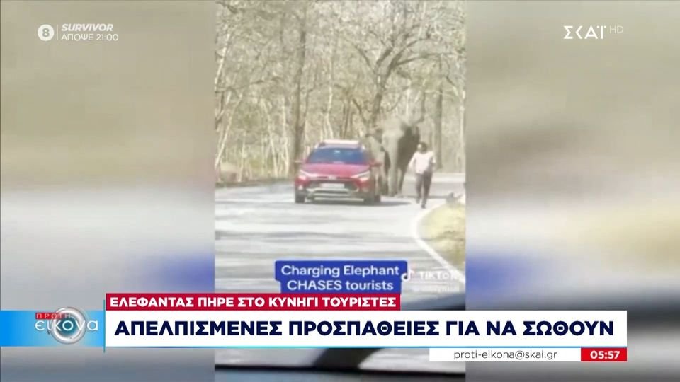 Απελπισμένες προσπάθειες τουριστών για να σωθούν από ελεφάντα που τους κυνηγούσε δίχως αύριο.