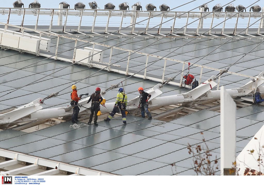 Οι εργασίες για την αποκατάσταση των φθορών στο στέγαστρο Καλατράβα στο ΟΑΚΑ προχωρούν. Ένα εντυπωσιακό βίντεο από drone δείχνει το στάδιο από ψηλά και δείχνει την πορεία των έργων.