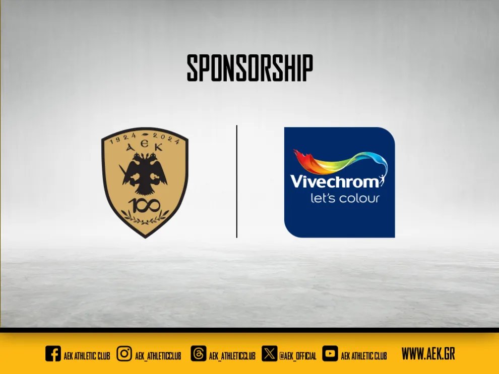 Η ΑΕΚ βρίσκεται στην ευχάριστη θέση να ανακοινώσει την έναρξη της συνεργασίας της με την VIVECHROM η οποία θα αποτελέσει χορηγό των τμημάτων μπάσκετ με αμαξίδιο, βόλεϊ γυναικών και ποδοσφαίρου γυναικών.