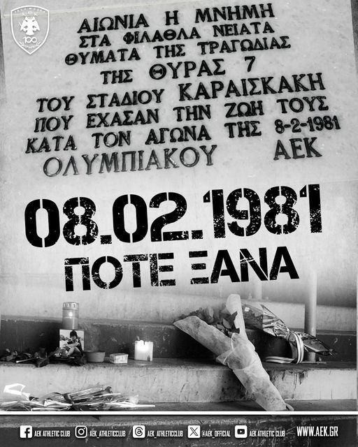 Σε ανάρτησή της, η Ερασιτεχνική ΑΕΚ ευχήθηκε να μην υπάρξει, ξανά, τέτοια τραγωδία.