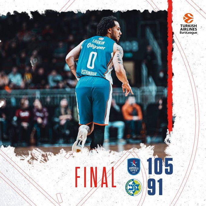 Έχοντας έξι παίκτες με διψήφιο αριθμό πόντων (!), η Αναντολού Εφές επικράτησε με το εντυπωσιακό 103-91 της Μακάμπι στην Κωνσταντινούπολη, συνεχίζοντας την αντεπίθεσή της για να προλάβει τη δεκάδα!