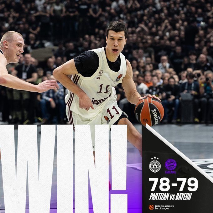 Μετά από μια συγκλονιστική ματσάρα η Μπάγερν Μονάχου άλωσε την έδρα της Παρτιζάν (78-79), με τρίποντη «βόμβα» του Σιλβέν Φρανσίσκο στην εκπνοή του αγώνα.