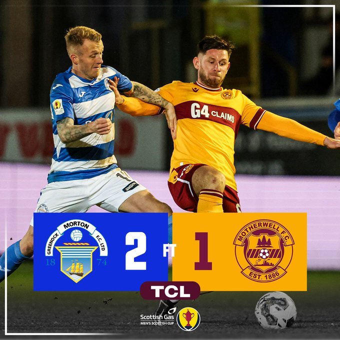 Την πρόκριση για τους «8» του Κυπέλλου Σκωτίας πανηγύρισε η Γκρίνοκ Μόρτον(ομάδα 2ης κατηγορίας), καθώς κέρδισε με 2-1 την Μάδεργουελ.
